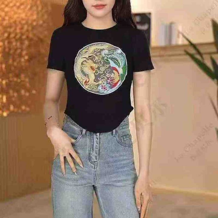全清7.8元/件(2380#货号)194件新中式国风复古龙纹刺绣圆领辣妹短袖,单款...