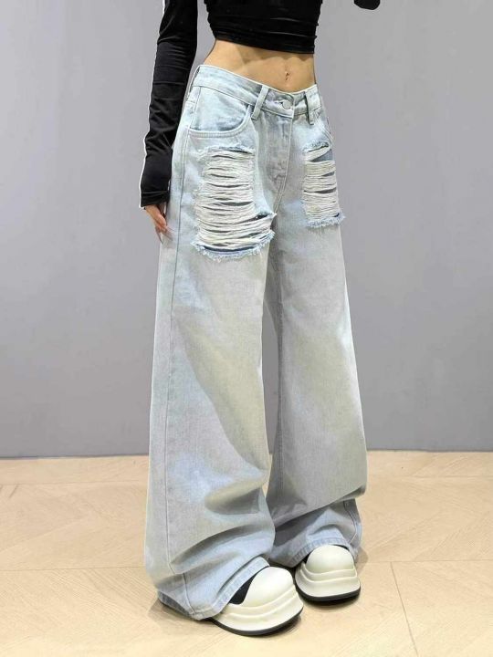 春季新款网红复古水洗磨破美式直筒阔腿牛仔裤,独立包装带腰卡带防伪扣,码...