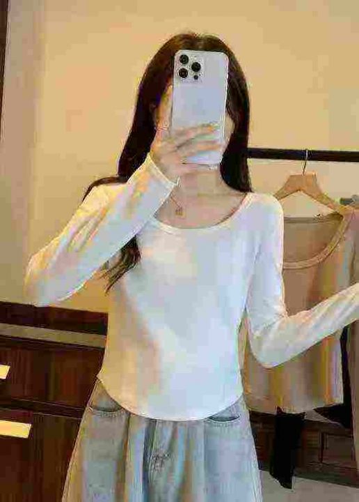 辣妹U领打底衫女春秋冬双面德绒紧身短款长袖T恤打底衫,144件,1-4码,独立...
