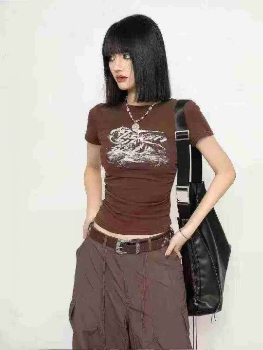 时尚洋气修身显瘦短款辣妹印花短袖T恤,图片款,品质好,工厂原单,5件一包...