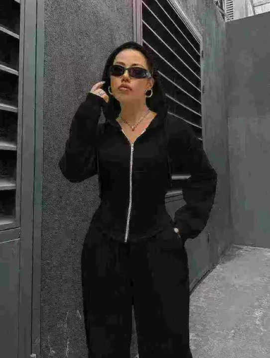 11.5清欧美跨境潮流摇粒绒短款连帽开衫+长裤休闲两件套,整款三色,数量100...