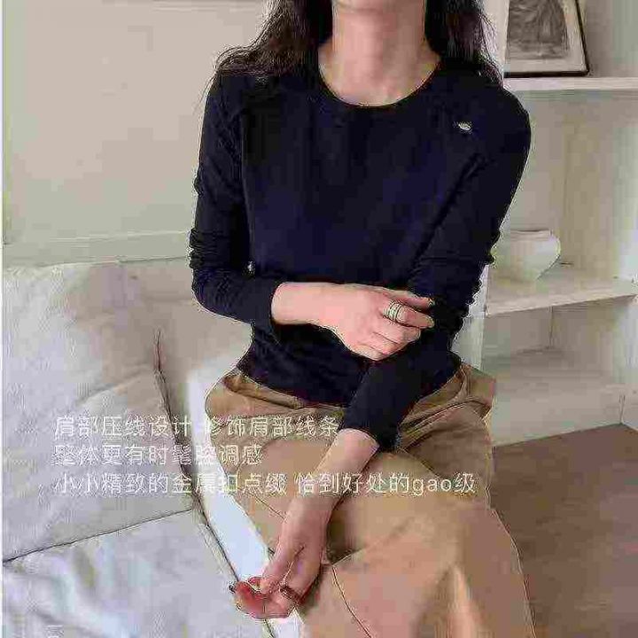 ️全清5.8 秋冬女装长袖正肩圆领打底衫,纯色简约薄绒打底衫新款,全部独...