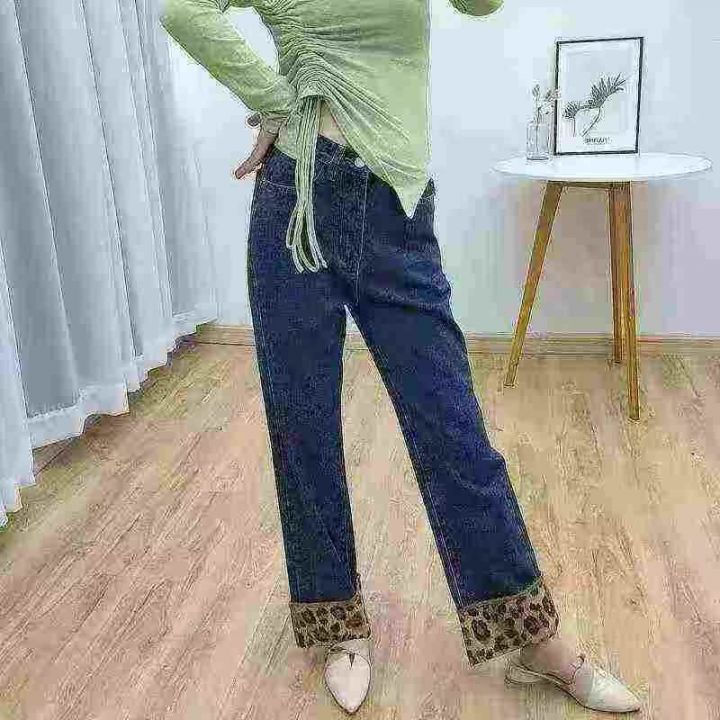 高腰牛仔直筒裤显瘦小个子深蓝美式豹纹直筒烟管裤180件,独立包装带吊牌,...