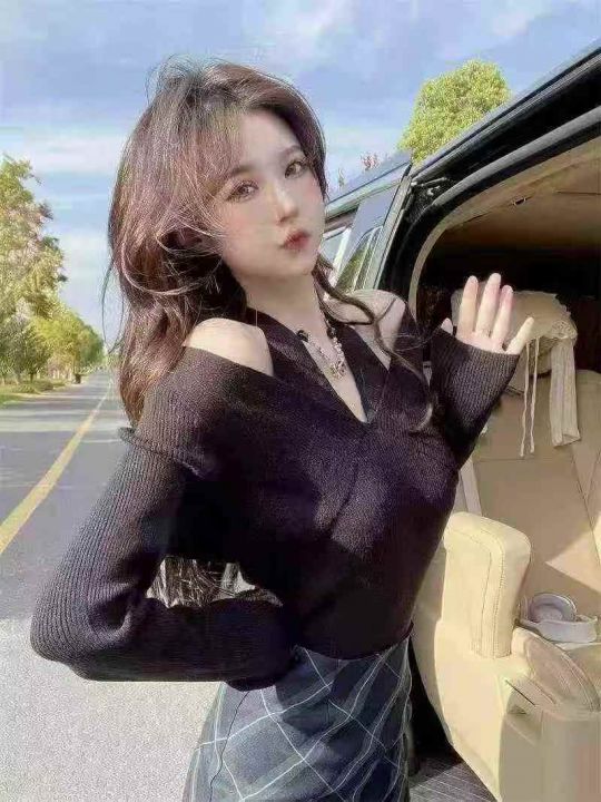 春季新款净版纯欲V领挂脖假两件冰丝顺滑曲珠长袖针织衫,独立包装,均码面...