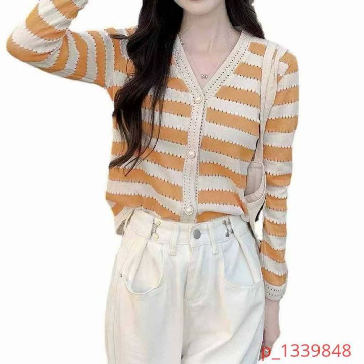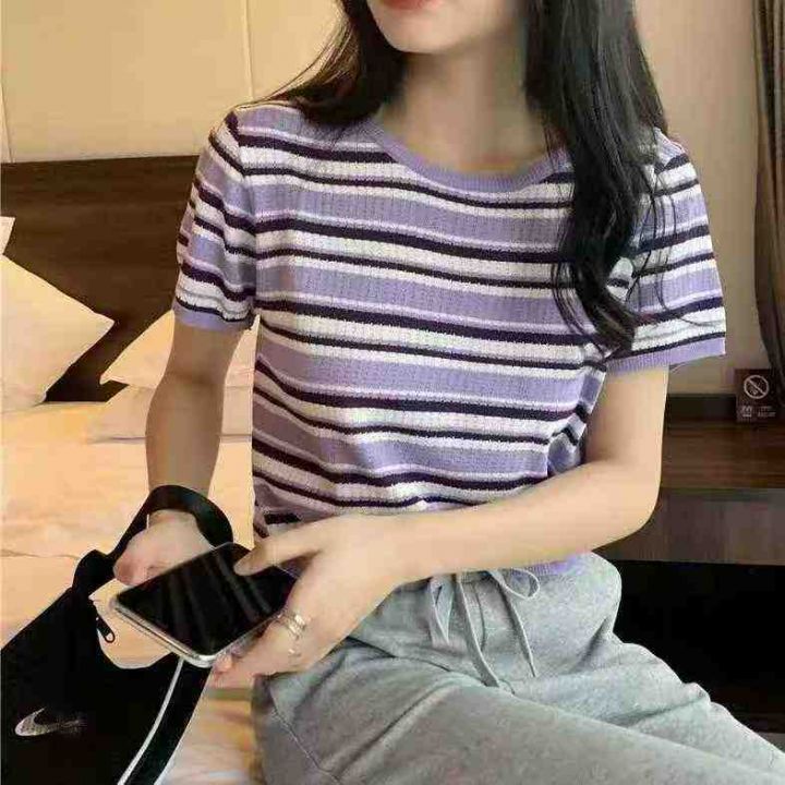 夏季新款韩版网红可甜可盐撞色条纹短袖针织衫,独立包装,均码面料柔软舒适...