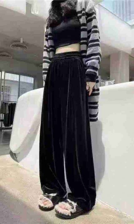 全清价7.9元金丝绒秋冬新款垂坠感高腰显瘦百搭宽松高腰休闲开叉阔腿裤,独...