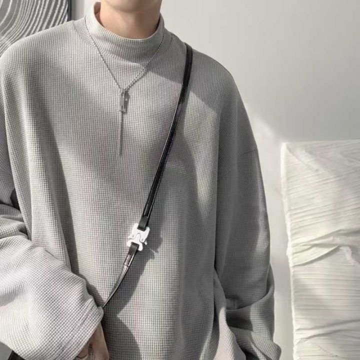 1075件,华夫格春秋长袖T恤男女潮牌纯色半高领打底衫美式卫衣,独立包装,...