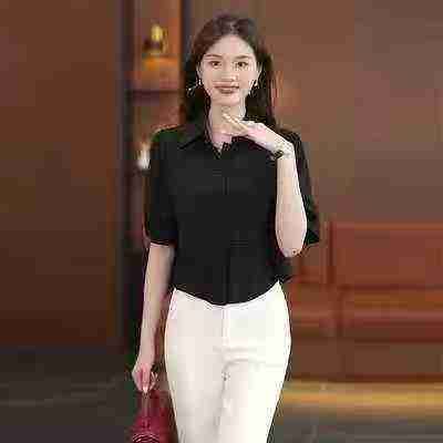 全清价5.9元夏季新款洋气时尚百搭显瘦气质复古盘扣纯色休闲短袖妈妈装上衣1...