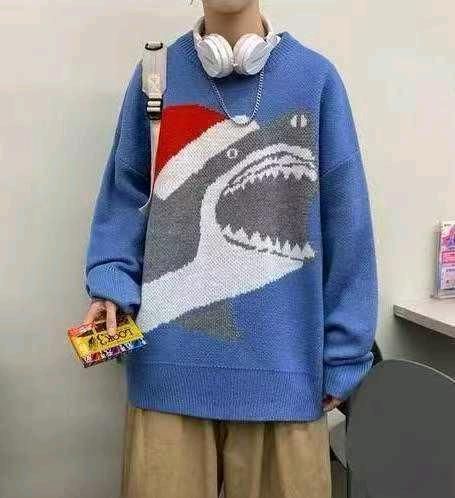 秋冬新款品牌原单男女同款宽松慵懒风卡通提花包芯纱套头毛衣,独立包装带吊...