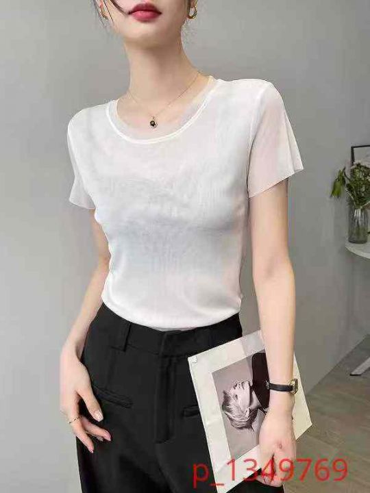清仓处理2.9128件白色t恤短袖女夏季薄款独特网纱内搭打底衫正肩上衣修身202...