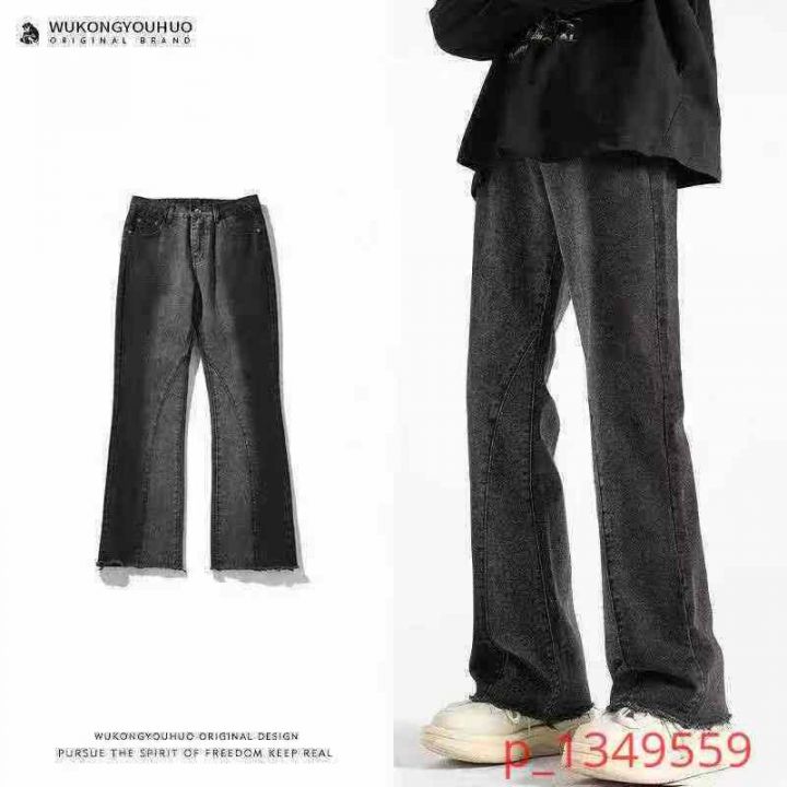 美式高街vibe裤子复古黄泥牛仔裤男款春秋季宽松直筒垂感微喇叭裤,数量231...