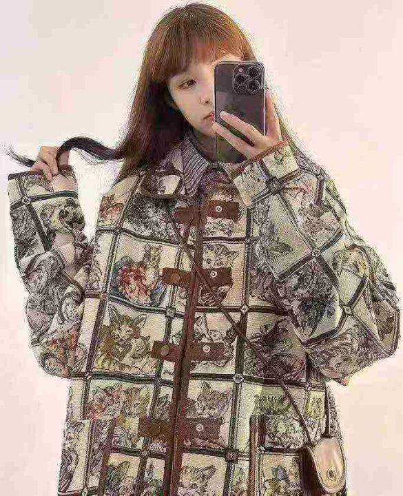 复古猫咪提花夹克外套73件13.8,有内衬,双口袋,百搭宽松版,米老鼠1件,...