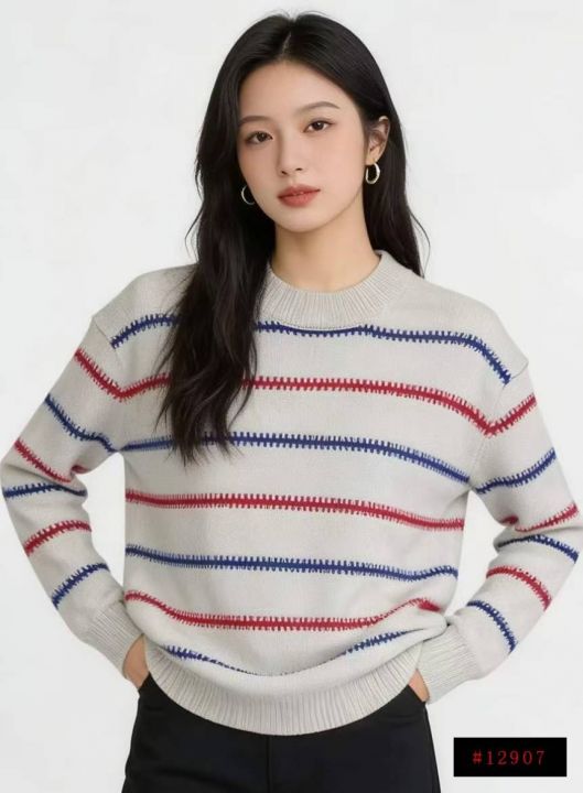 秋冬新款撞色条纹宽松慵懒风北极绒套头毛衣,独立包装,码数S- 2XL码,面料...