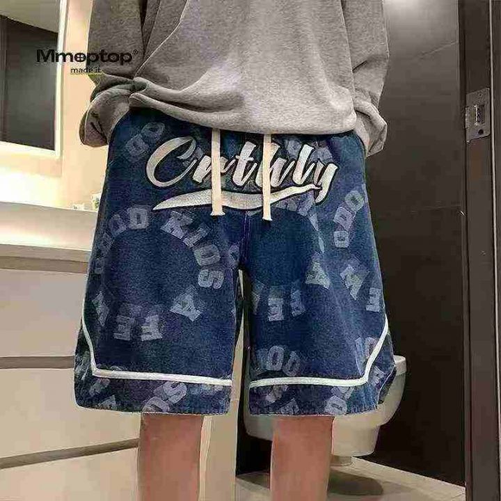 美式潮牌印花牛仔短裤男士夏季高街宽松直筒五分裤90件,独立包装带吊牌,尺...