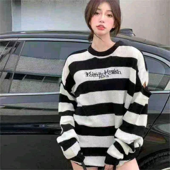 5.9元清秋季新款宽松长款条纹针织衫,数量2980件,单款5色,均码宽松版型,...