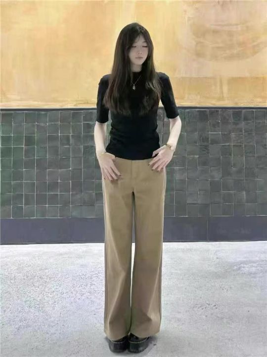 美式复古棕色高腰直筒窄版阔腿加长版洗水棉牛仔长裤51条,码数S-3XL,独立...