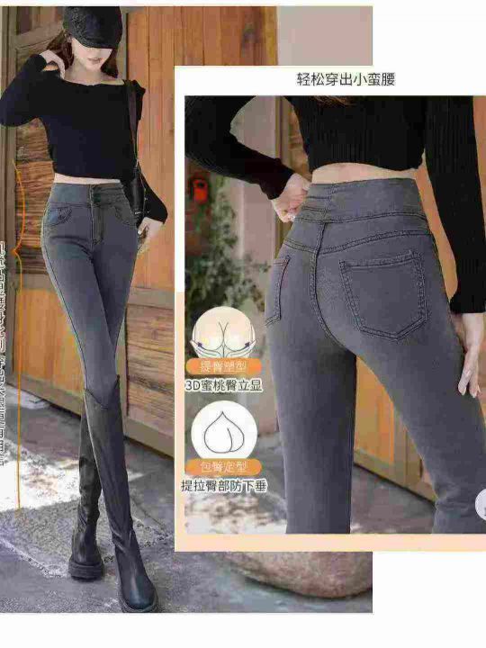 秋冬季女士加绒烟灰色弹力小脚牛仔裤,单款单色,没包装,数量280条,25-32...