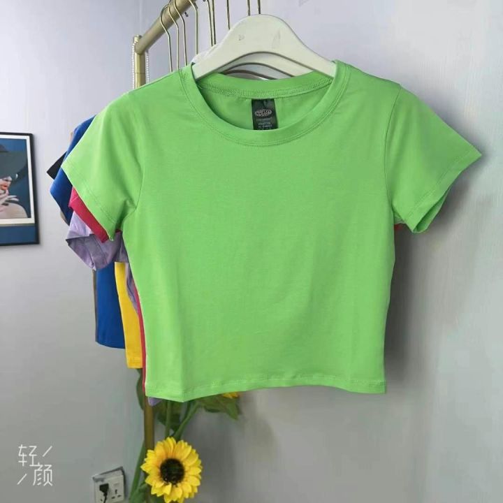 夏季糖果彩色纯色短袖棉T恤女士短款T恤,码数,S M L XL XXL,九个色,全部...