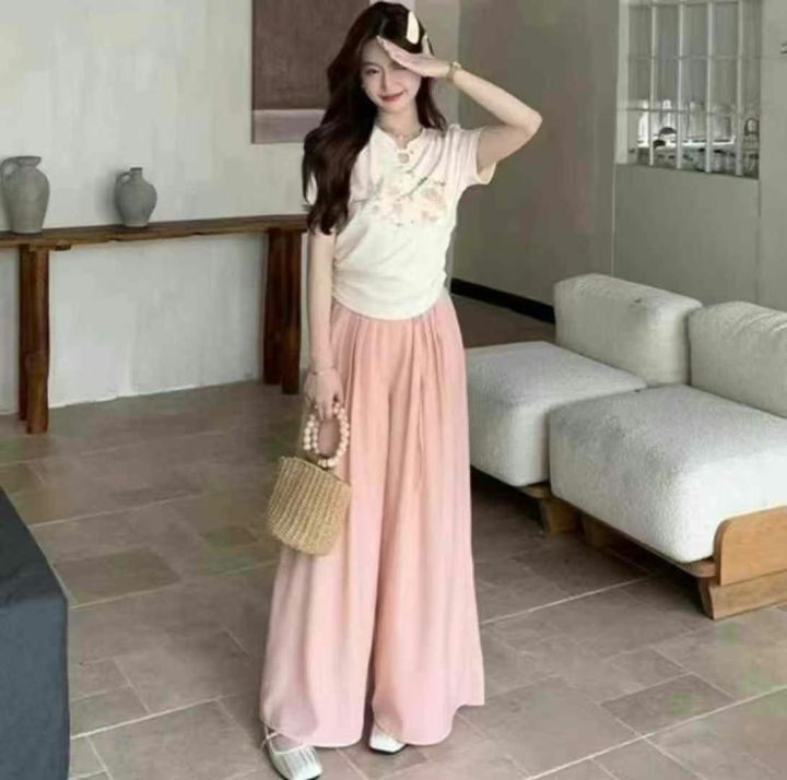 8.8清电商仓回收100条奶芙芙粉色国风山本裤阔腿裤女,码数s-xl。面料柔软舒...