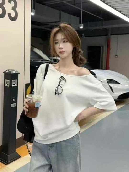 全清3.8元天猫在售267件冰丝螺纹斜肩一字肩短袖t恤女新款夏上衣,单款两色...