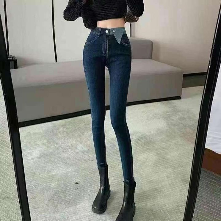 高弹力牛仔小脚裤☕️50条全清11.8元码数S到5xl,撞色牛仔裤女春夏新款大码...