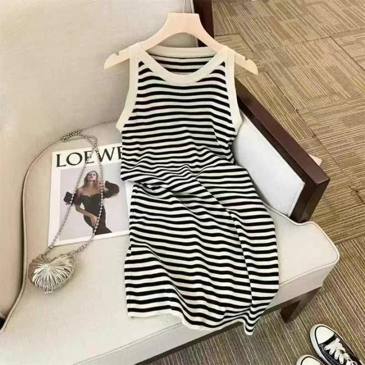 夏季新款撞色条纹针织背心连衣裙,独立包装,均码面料柔软舒适弹力大,90件...