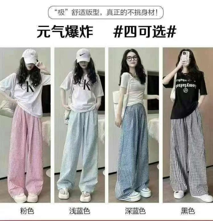 下身阔腿长裤[太阳]全清8.5,3200件,均码,整款,理想格子阔腿裤女夏薄款...