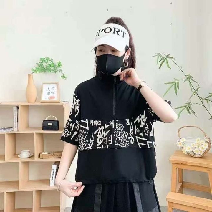 韩版宽松休闲时尚女士拼色立领拉链短袖T恤.单款单色5个码独立包装336件全...