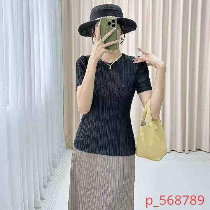 350件左右三宅T恤纯色镂空网眼百搭显瘦简约褶皱上衣!均码!高弹力!原版面...