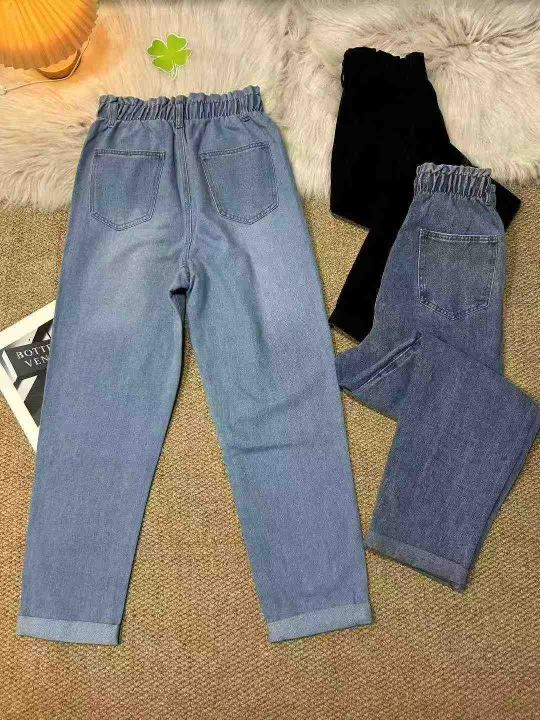 花瓣款松紧腰哈伦牛仔裤 女士高腰宽松型偏大码显瘦老爹裤,数量490条,码数...