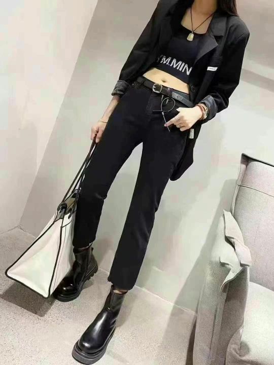 夏季新款牛仔裤女开叉纽扣时尚弹力显瘦欧货排扣九分烟管裤潮,数量95件,码...