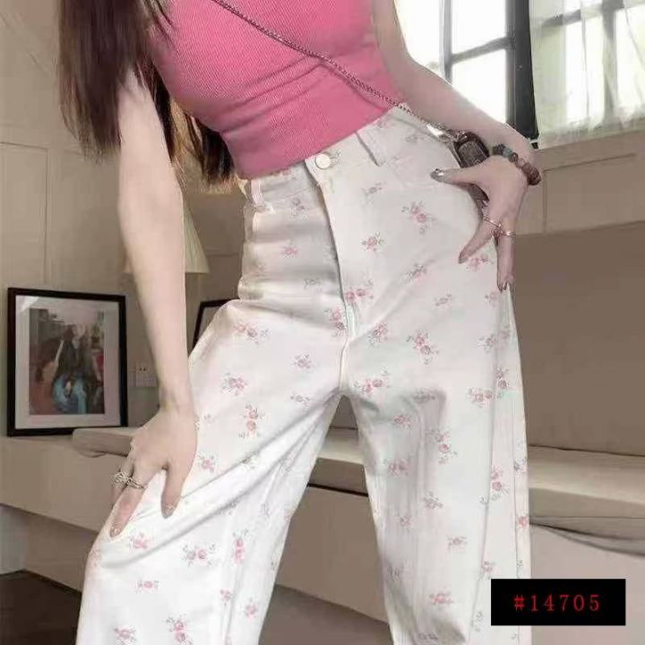 3️⃣韩式甜美风高腰碎花女春夏宽松显瘦百搭阔腿裤145条,码数M,独立包装...