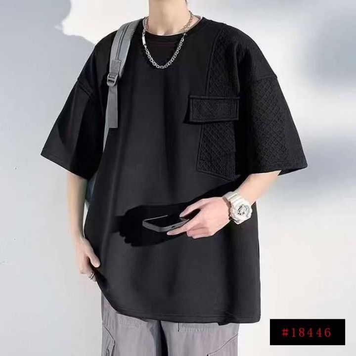 3️⃣新款男装设计感拼接宽松百搭上衣夏季潮流港风休闲男士短袖t恤138件,...