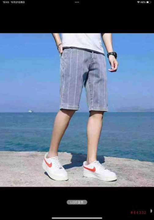 弹力条纹短裤男生外穿夏季薄款休闲中裤网红潮流百搭五分牛仔裤300件,图片...