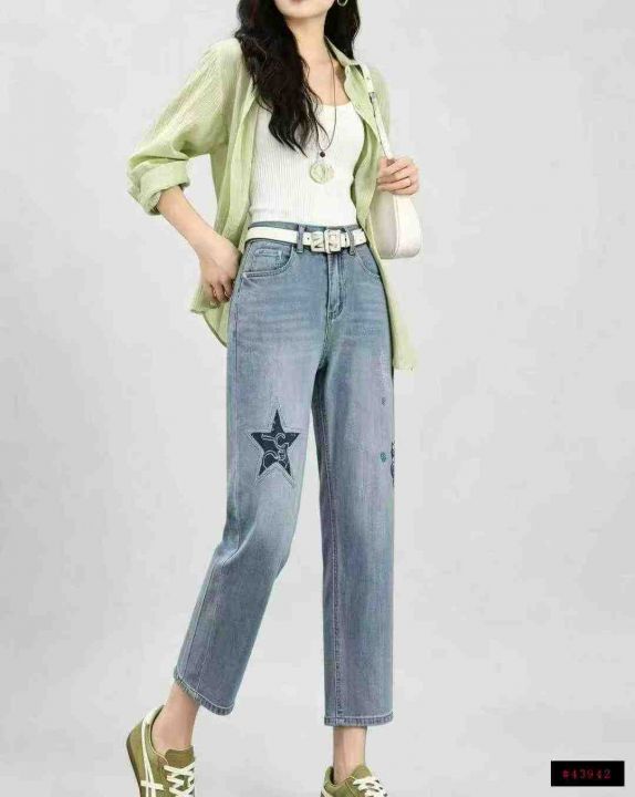 高弹力高腰星星工艺牛仔裤百搭显瘦直筒烟管裤9条全清9.8元,码数25-29,正...
