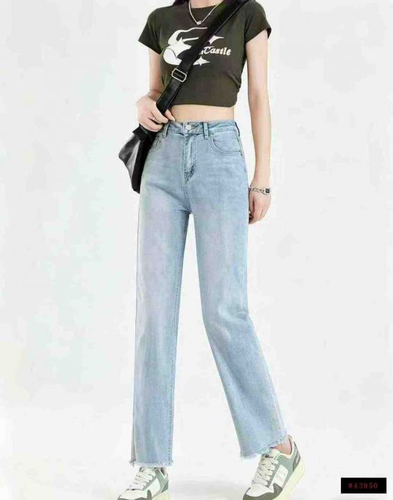 直筒牛仔裤女夏季高腰宽松毛边乞丐阔腿裤145条全清11.8元,码数S到XL,正品...