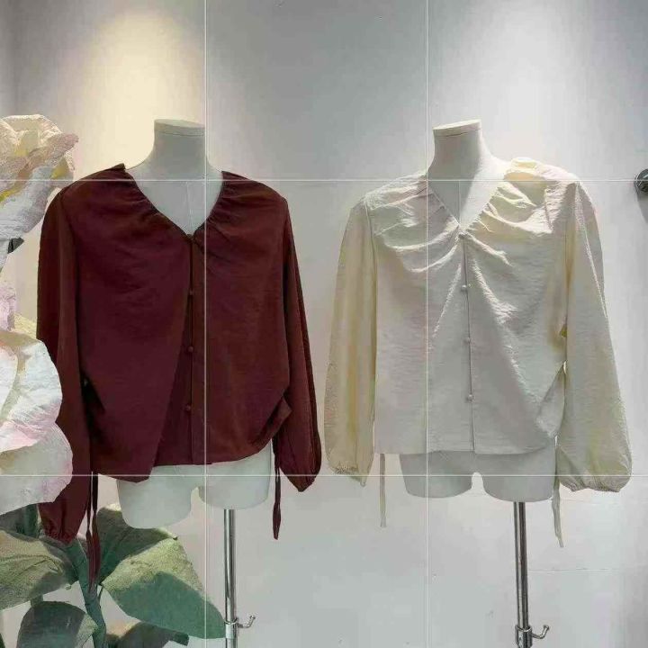 13.8大码女装杏色V领抽绳长袖衬衫胖MM遮肉显瘦设计感小众上衣衬衣,s-4xl,...