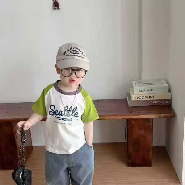 全清7.8 分货➕1 纯棉英文字母印花拼袖童装T恤 数量500件左右 尺码110...