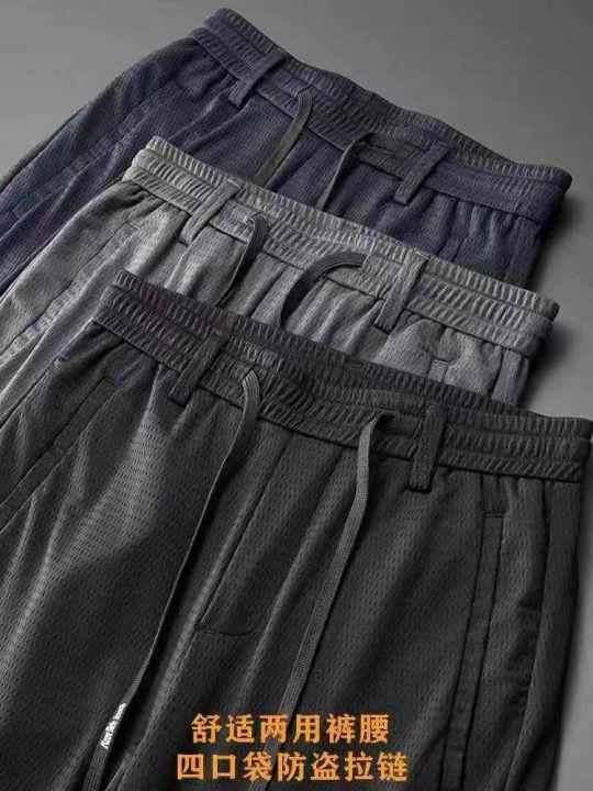 春夏季新款冰丝镂空网眼四面弹男士宽松直筒空调速干休闲裤,独立包装带吊牌...