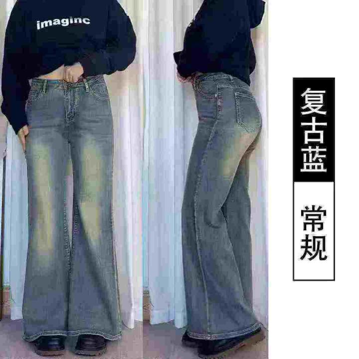 卡其色喇叭裤工装裤高级感美式阔腿拖地微喇女牛仔裤,码数XS-XL,独立包装...