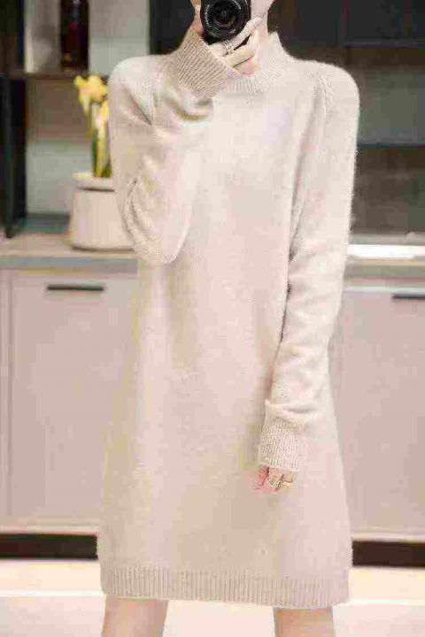 半高领慵懒风仿水貂毛毛衣女早秋新款加厚打底宽松针织连衣裙,独立包装,均...