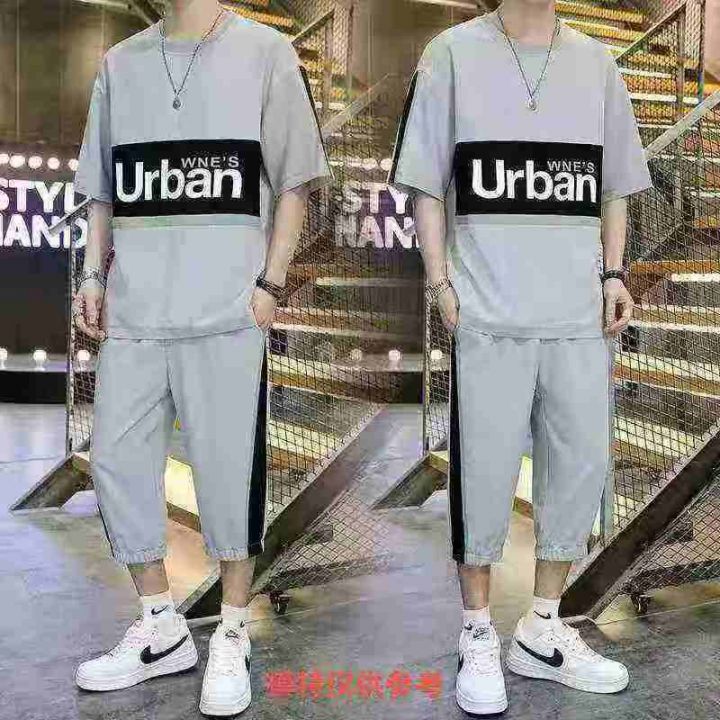 全清价10.9短袖t恤套裤套装男士夏季新款休闲宽松搭配一套帅气潮流运动套裤...