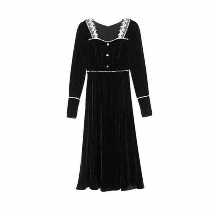 ️39件,法式丝绒连衣裙赫本秋冬新款复古过膝长裙长袖蕾丝接收显瘦气质,独...