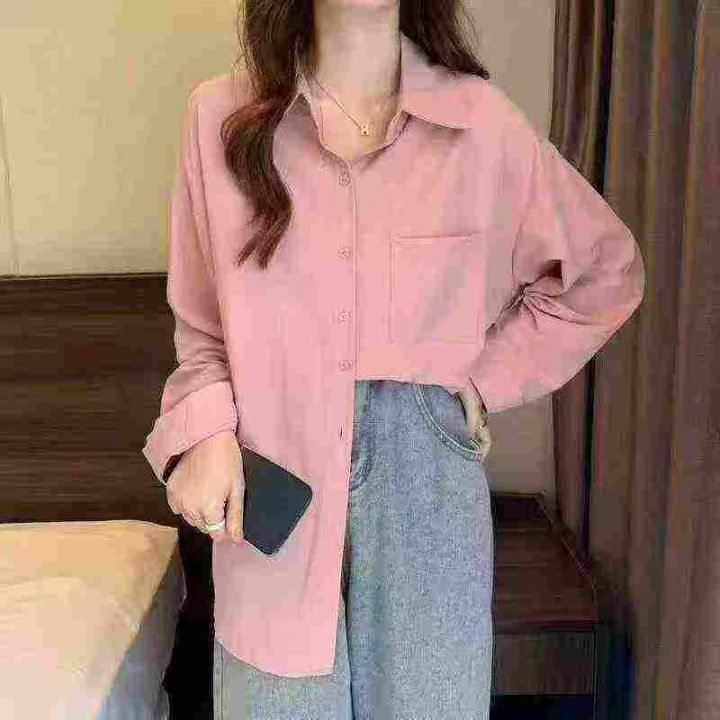 上新全清:11.8一件韩系慵懒风宽松百搭遮肉长袖衬衫,[爱心]45件左右,粉色...