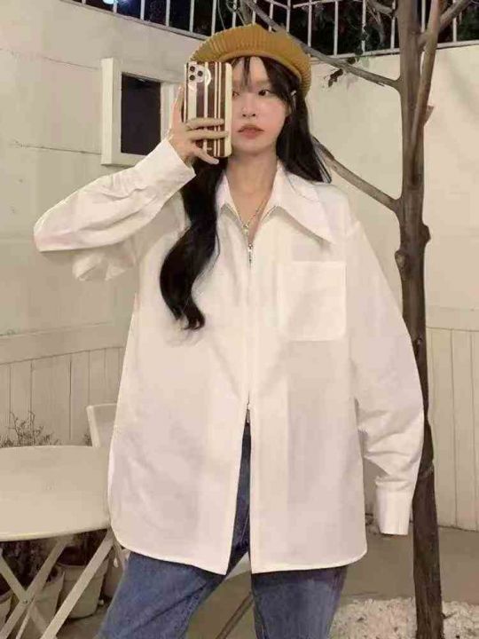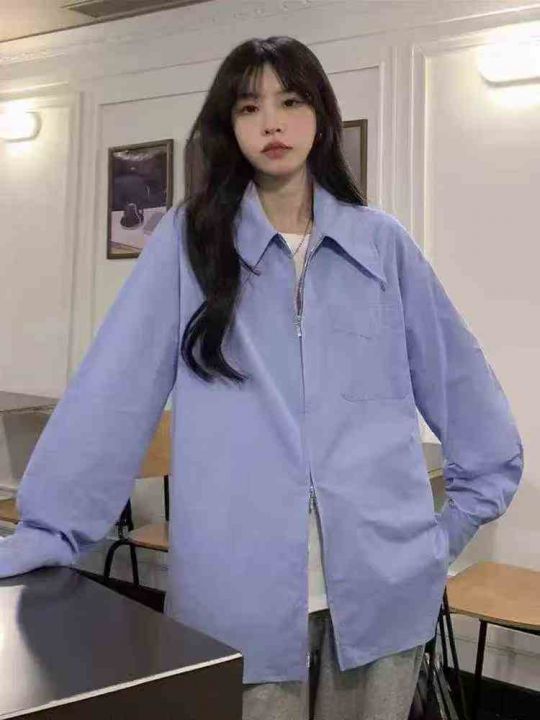 大码法式设计感双拉链POLO领长短袖衬衫女春夏薄款衬衣上衣外套 独立包装 码...
