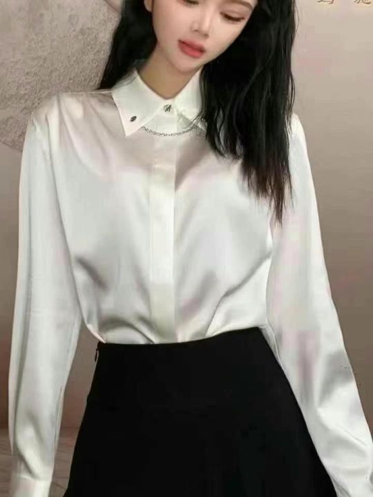 品牌原单大码时尚港风轻熟女装装仿绸缎长袖衬衣,独立包装带吊牌,码数M--5...