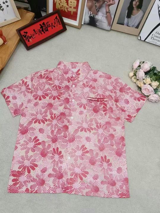 7.9全清,分货+1,扎染印花春秋短袖衬衣设计洋气宽松百搭高级复古上衣衬衫...