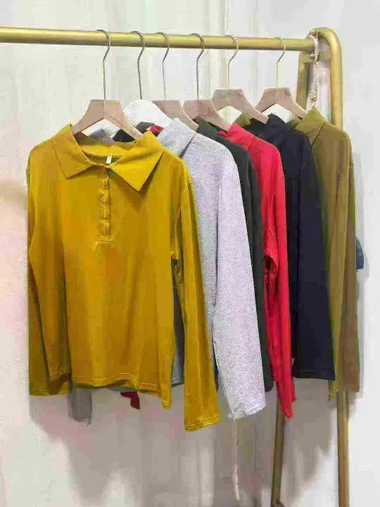 舒适弹力长袖薄款衬衣女外穿时尚简约宽松显瘦POLO领套头上衣,数量1960件,...