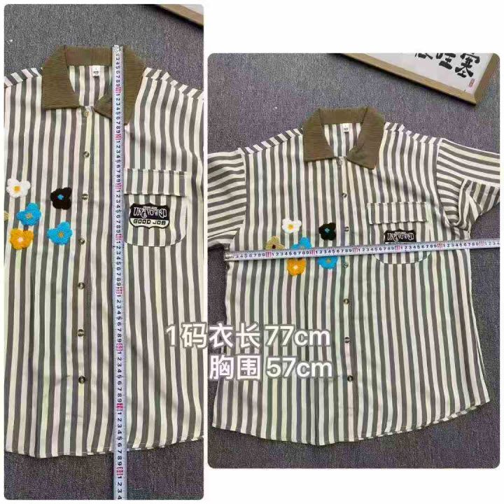 休闲条纹短袖衬衫135件9.5,撞色拼接,字母刺绣,花朵图案毛巾绣,码数1-3...