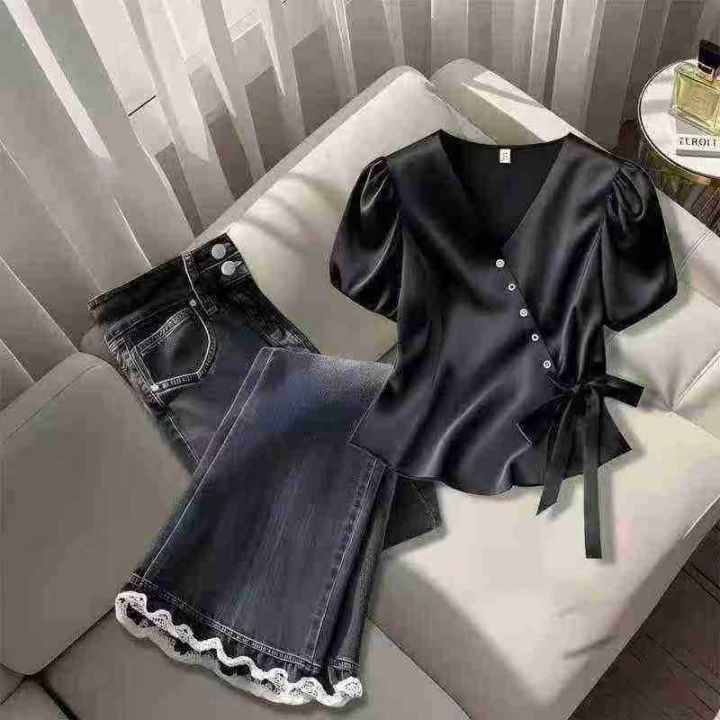 上新全清:11.8一件高级感气质独特醋酸缎面V领黑色衬衣,[爱心]65件左右,...